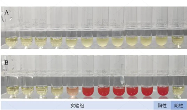 注:圖A直接觀(guān)察;圖B加TTC試劑染色觀(guān)察