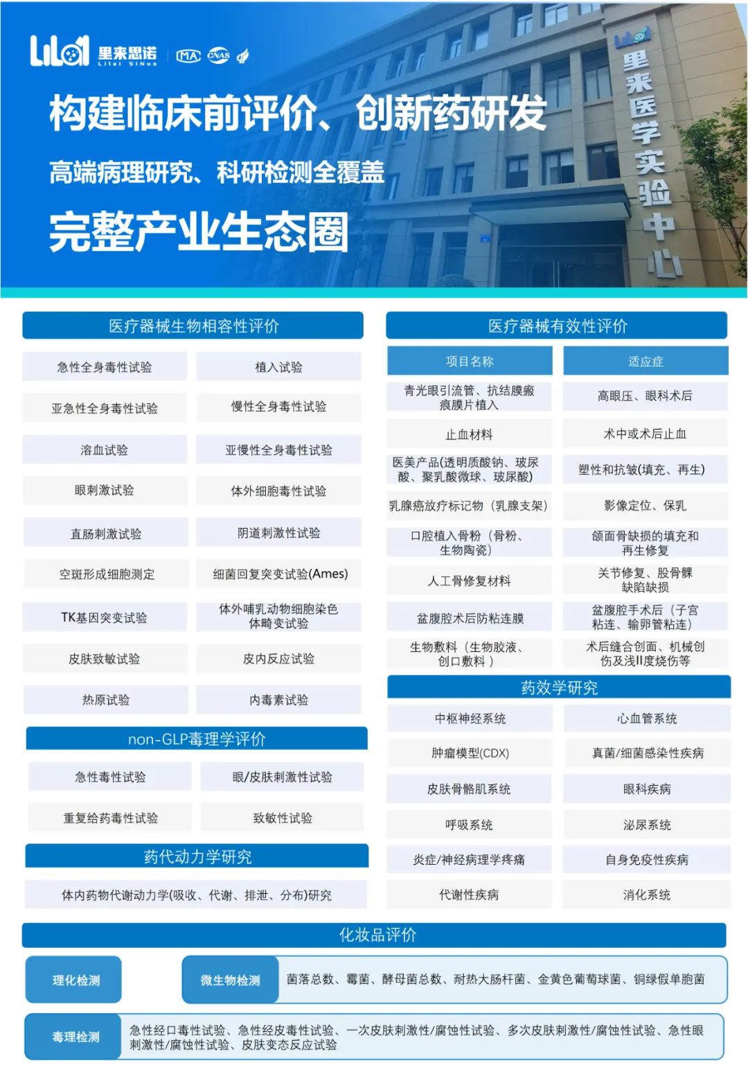 截至目前,里來思諾已完成醫(yī)療器械生物材料評價領域,化妝品評價領域的CMA資質(zhì)認定,可出具符合國家有關法律、行政法規(guī)標準、具有證明作用的數(shù)據(jù)和結果。