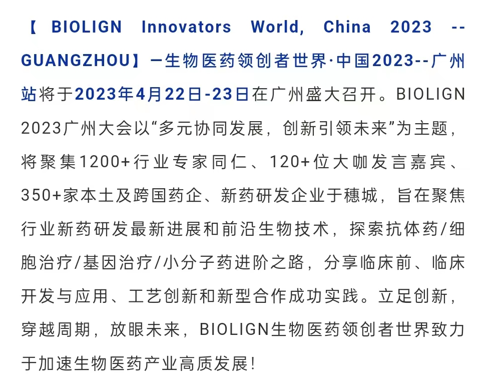 本屆廣州大會共有7場主題論壇,重點討論議題將聚焦在細胞治療、基因治療、抗體/蛋白藥物/ADC/雙抗、小分子藥物、不可成藥靶點、新藥研發(fā)、CMC、臨床應(yīng)用最新進展、生物藥商業(yè)化和產(chǎn)業(yè)化之路、新型合作成功實踐等。匯聚眾多醫(yī)藥行業(yè)創(chuàng)新領(lǐng)銜專家、知名學(xué)者開展深度交流和研討,加速生物醫(yī)藥產(chǎn)業(yè)高質(zhì)發(fā)展。