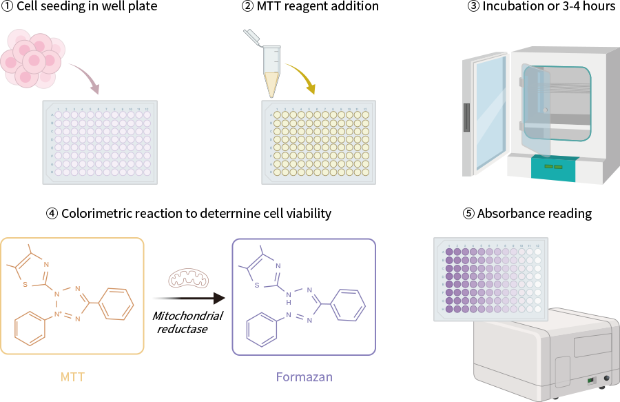在特定溶劑存在的情況下,該產(chǎn)物被完全溶解,然后通過酶標(biāo)儀在特定波長(zhǎng)(如570nm)條件下根據(jù)吸光度來反映細(xì)胞增殖/毒性情況。